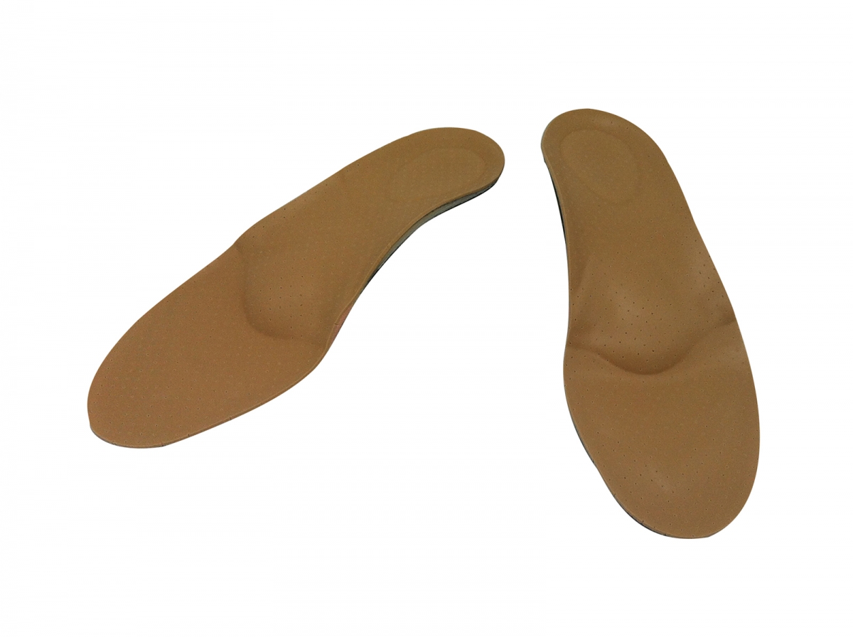 Orthèse plantaire finie de confort avec barre de soutien de la voûte transversale en latex pour faciliter la circulation sanguine de la plante du pied. Présente une zone calcanéenne souple. Antichoc grâce au revêtement en PPT.