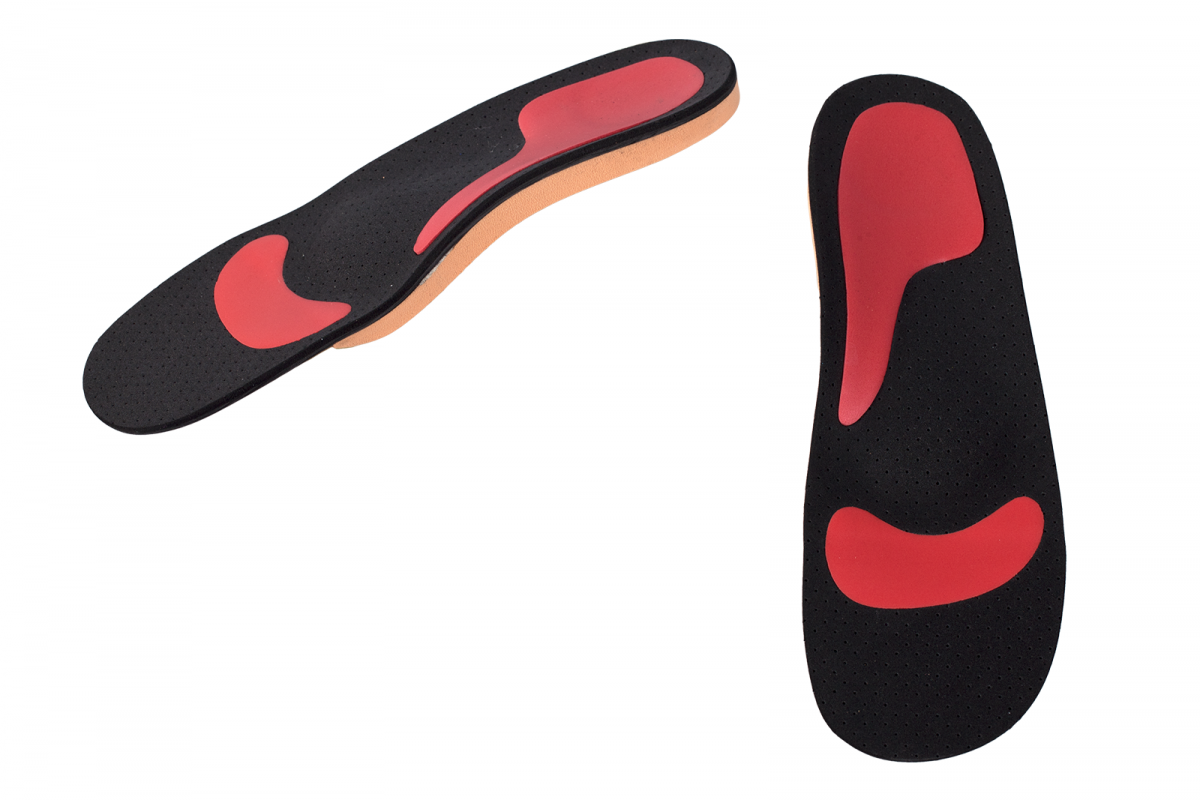 Orthèse plantaire semi-finie avec soutien de la voûte longitudinale et légère barre rétro-capitale, mises en décharge du talon, des têtes métatarsiennes et voûte longitudinale en ARUFOAM.