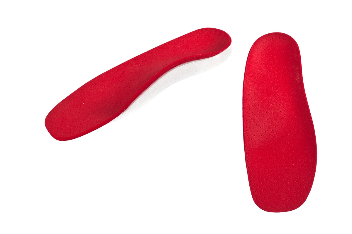 Orthèse plantaire semi-finie avec soutien de la voûte longitudinale médiale, réalisée dans un matériau dépressible, qui offre davantage de confort et d’élasticité au pied.