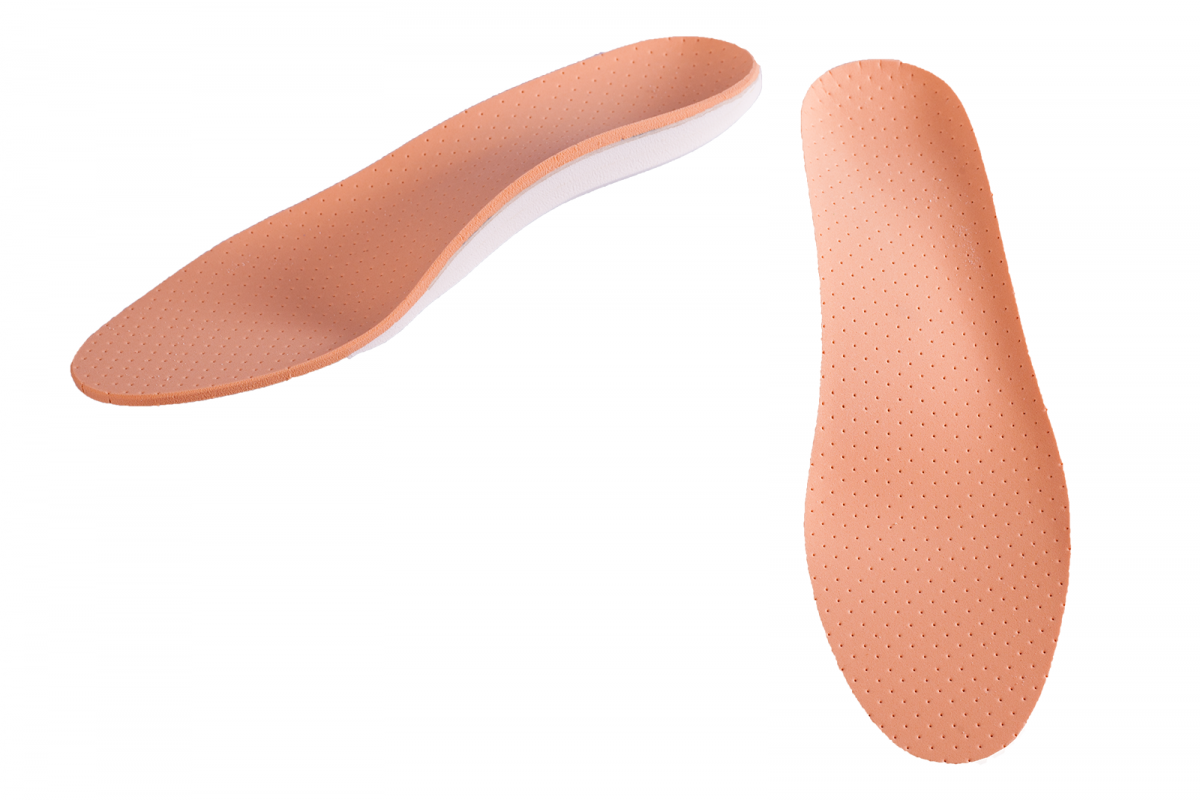 Orthèse plantaire semi-finie avec soutien de la voûte longitudinale médiale, réalisée dans un matériau dépressible, qui offre davantage de confort et d’élasticité au pied.