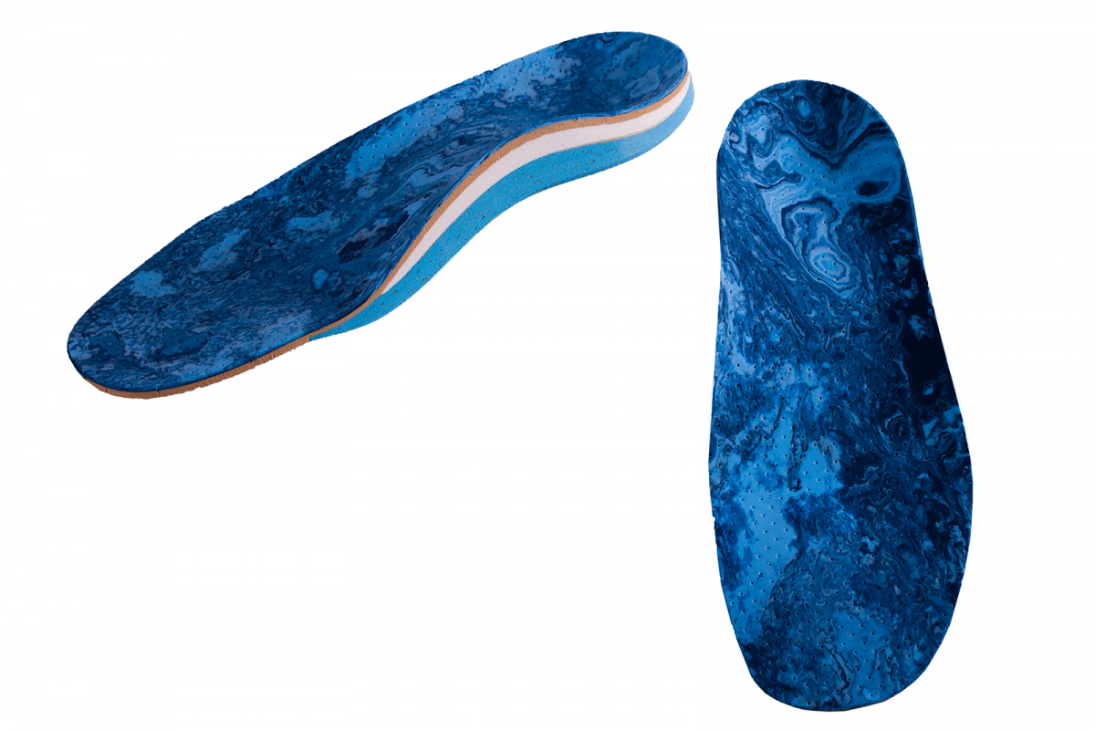Orthèse plantaire semi-finie avec soutien de la voûte longitudinale médiale, réalisée dans un matériau dépressible, qui offre davantage de confort et d’élasticité au pied.